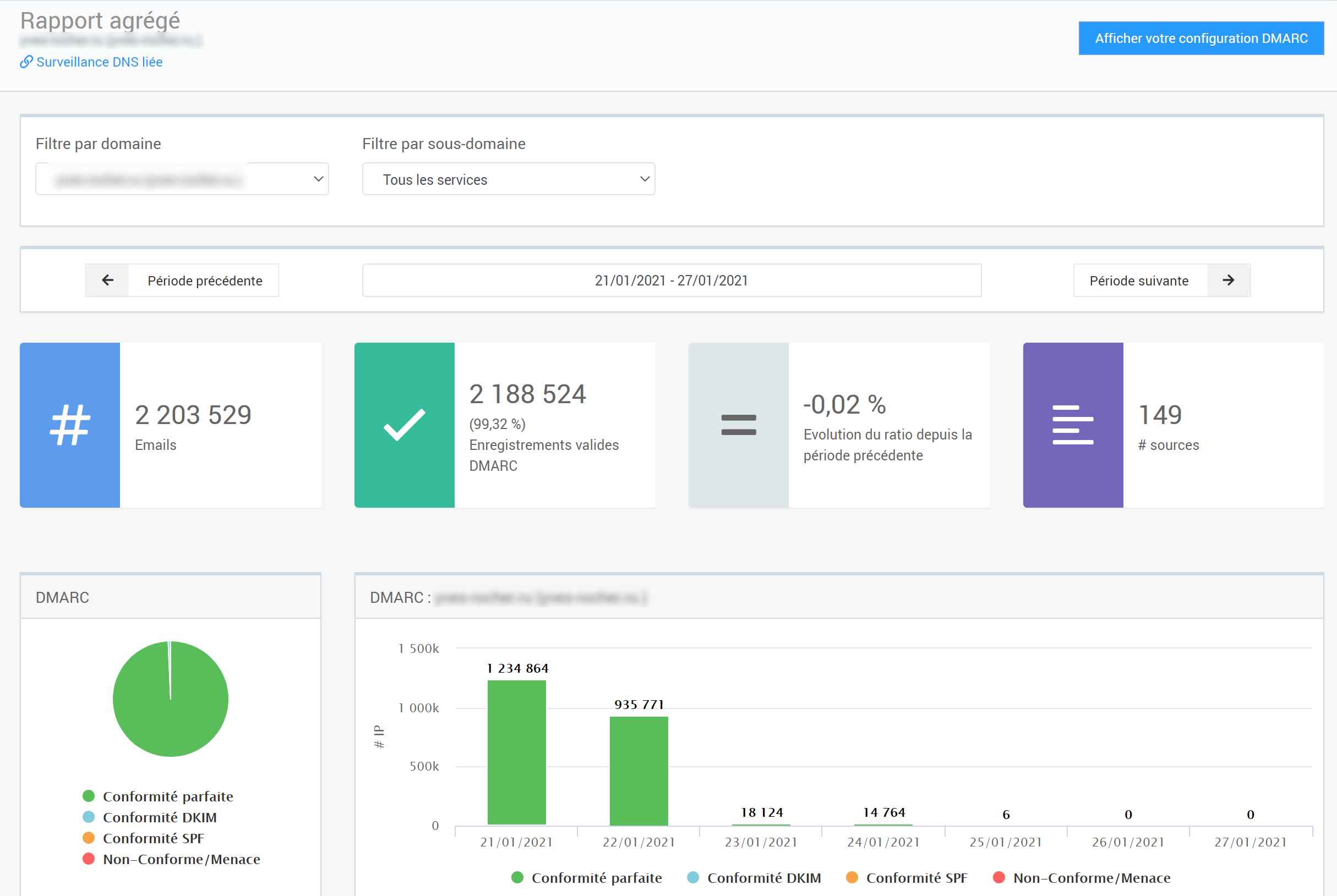 Merox provides in-depth DMARC reports, offering granular visibility into email authentication results across SPF, DKIM, and DMARC. We found its dashboard effective for identifying email sources and understanding authentication failures.